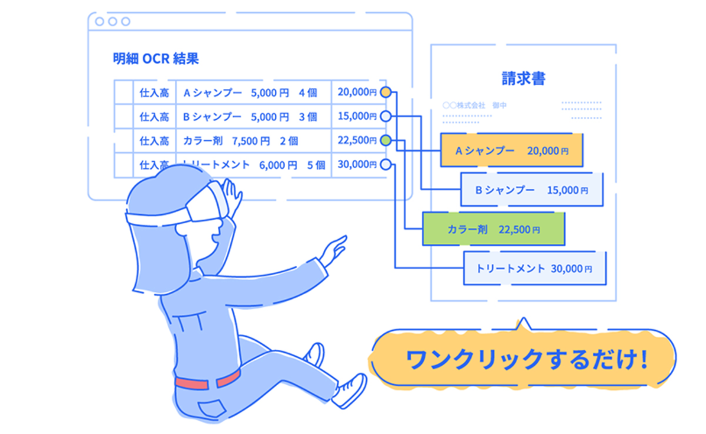 AI-OCRと人の補正による高精度でデータ化で記帳業務の入力時間を大幅に削減することができます。