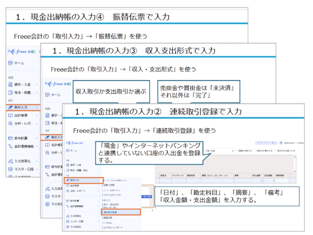 崇さん:まずは自分が徹底的に使いこなせるようになることを意識しました。その上で、顧問先向けにスクリーンショットを多用したオリジナルの操作マニュアルを作成しました。多機能なfreee会計ですが、お客様に必要な機能は限られています。そこで、「最低限これだけは」という部分を抜粋し、一目でわかるように工夫しました。