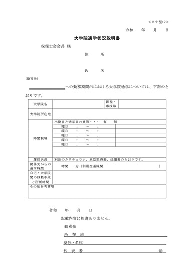 働きながら大学院に通っていた場合:大学院通学状況説明書