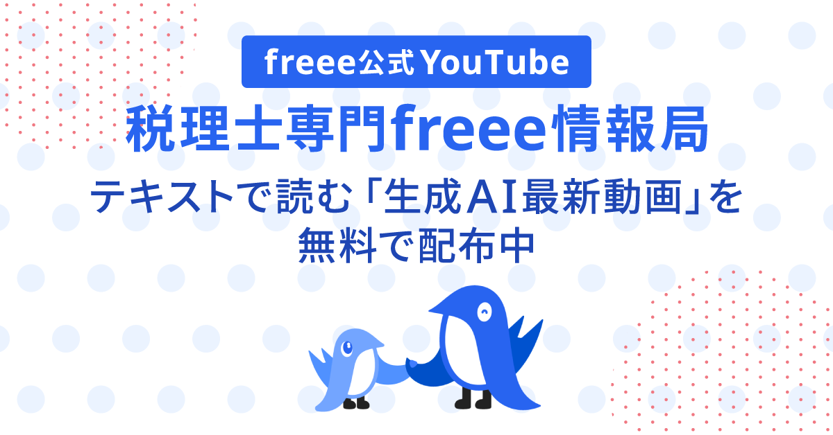 税理士・会計事務所など士業の皆様向けにfreeeが制作・運営をするYouTube「税理士専門freee情報局」で、2025年もっとも再生回数の多かった生成AIに関する動画「会計業界の最前線!(生成AIでレシート一括処理、税区分から勘定科目まで」がテキスト文字で読めるようになりました。