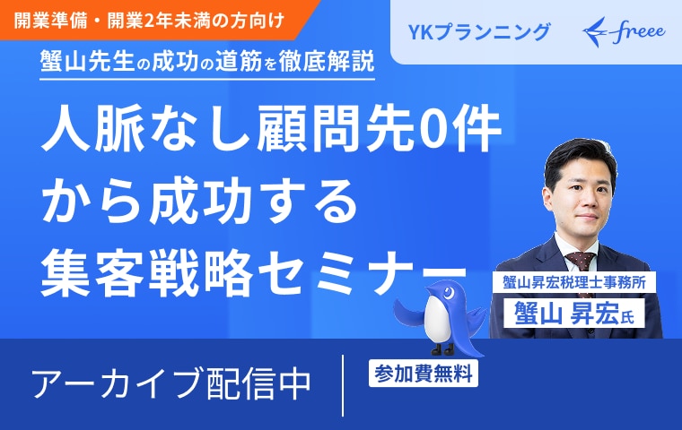| セミナー名 | 【アーカイブ配信】人脈なし顧問先0件から成功する集客戦略セミナー |
