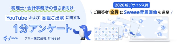 SweeeぬいぐるみやfreeeTシャツ、ロゴ入りアイテムなどがもらえる「アンケートキャンペーン事前エントリーフォーム」をご案内いたします。